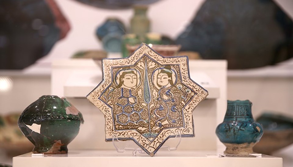 Aslan, müzedeki iki vitrinde sırlı seramik kısmı açtıklarını belirterek, “Bu seramikler ortasında bilhassa 900 ile 1000 yıl öncesine ilişkin olan kıymetli Orta Çağ devri seramikleri bulunmaktadır. Bunların en hoş örnekleri ise Selçuklular periyoduna ilişkin olan ‘sırlı seramikler’dir. Yeşil ve mavi tonlarında kobalt mavisi tonlarında yapılmış olan ‘sırlı seramikler’ üzerinde, bitkisel ve geometrik süslemeler ile insan figürleri bulunmaktadır” dedi.