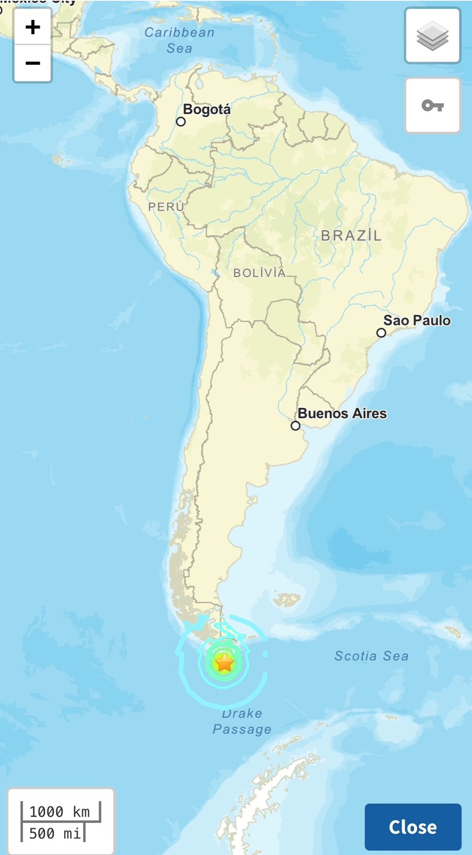 ABD Tsunami İkaz Merkezleri, Drake Geçidi’nde meydana gelen zelzelenin merkez üssünden 300 kilometre uzaklıkta bu dalgaların oluşabileceğini söyledi.