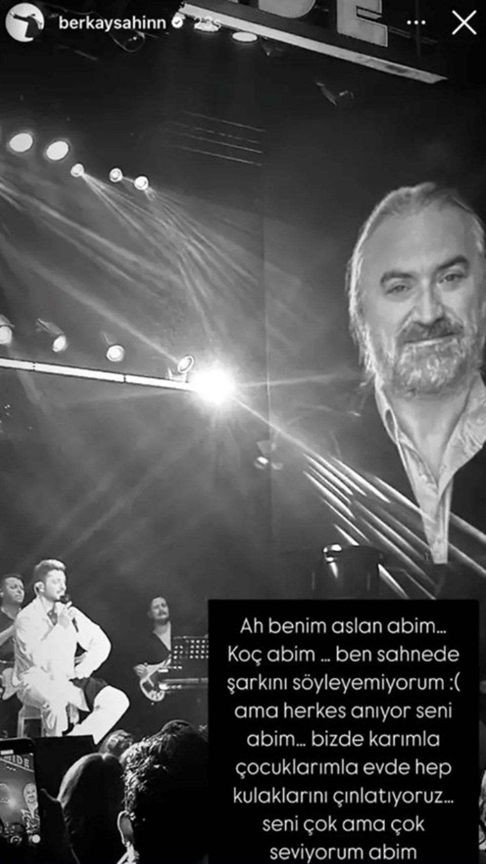 Murat Boz’un sahnede Volkan Konak’ın müziklerini söylemesiyle ilgili paylaşım yapan Berkay Şahin, “Ah benim aslan ağabeyim… Koç ağabeyim… Ben sahnede şarkını söyleyemiyorum fakat herkes anıyor seni ağabeyim. Biz de karımla, çocuklarımla meskende daima kulaklarını çınlatıyoruz… Seni çok çok seviyorum ağabeyim.” dedi.