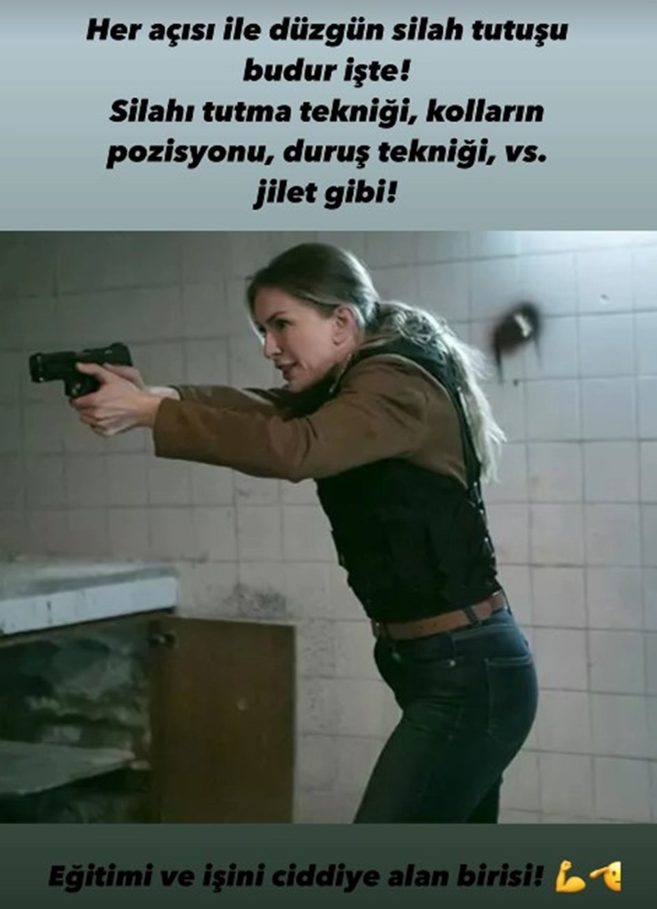 Kaya “Her açısı ile düzgün silah tutuşu budur işte! Silahı tutma tekniği, kolların durumu, duruş tekniği jilet gibi! Eğitimi ve işini ciddiye alan birisi.” dedi.