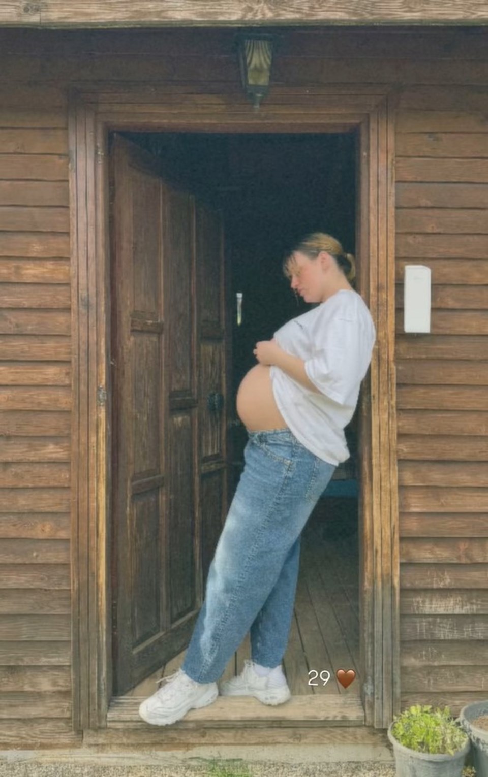 Karnı yeterlice barizleşen 32 yaşındaki oyuncunun paylaşımı büyük ilgi gördü.