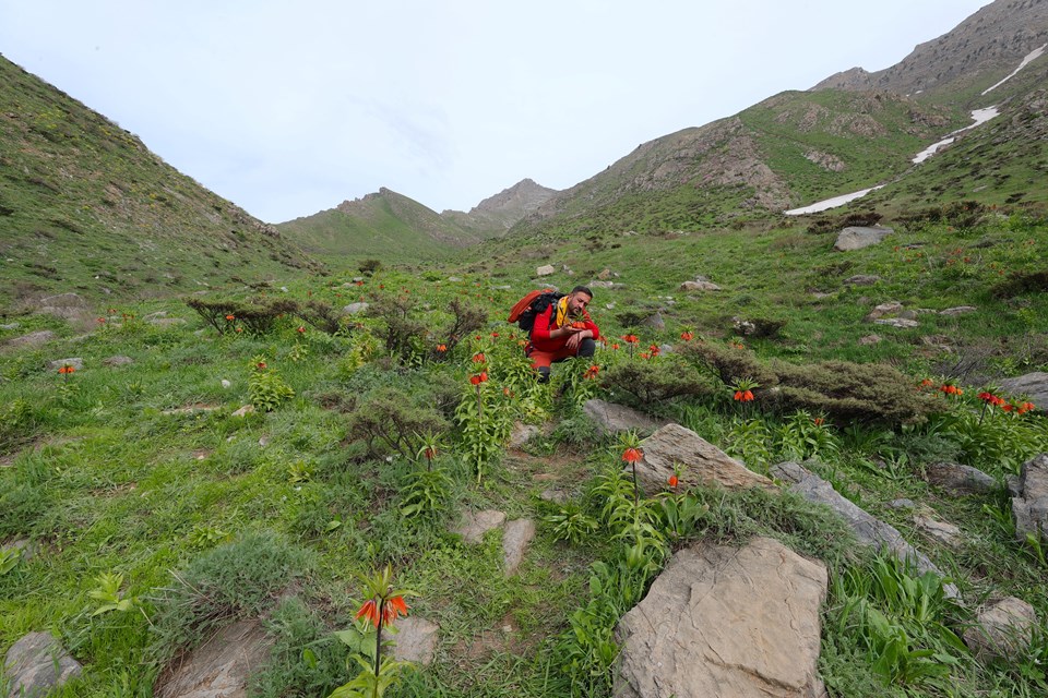 Yaptıkları tırmanışın akabinde bölgeye doğaseverler, kırmızı ve turuncu renkleriyle görsel şölen oluşturan aksi laleleri görüntüledi.