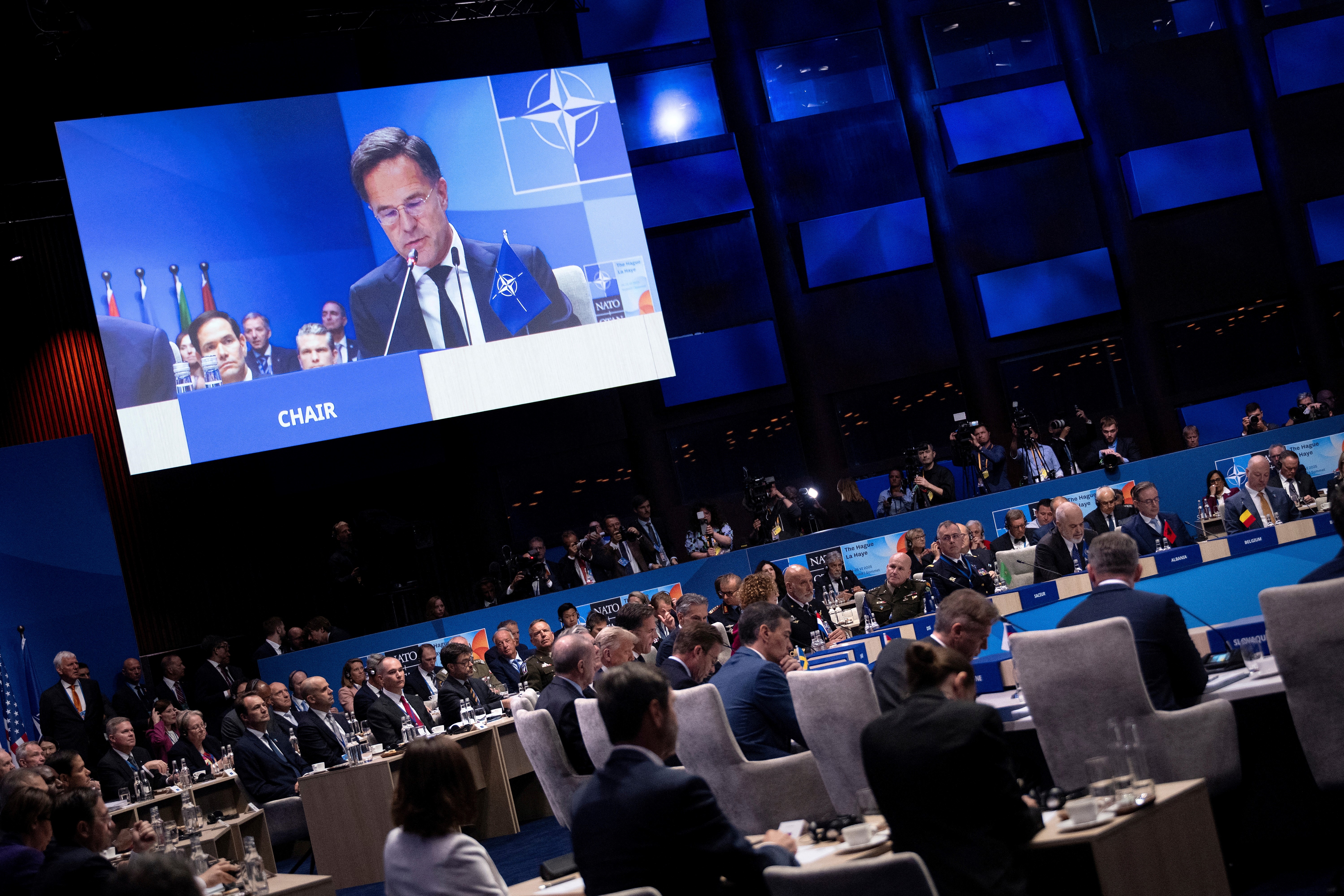 NATO Genel Sekreteri Mark Rutte, oturumun açılışında yaptığı konuşmada, ABD Başkanı Donald Trump’ın savunma harcamalarının artırılması konusunda oynadığı rolü övdü.